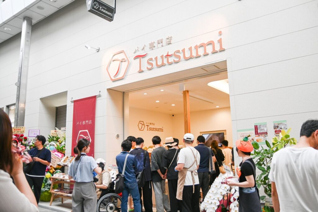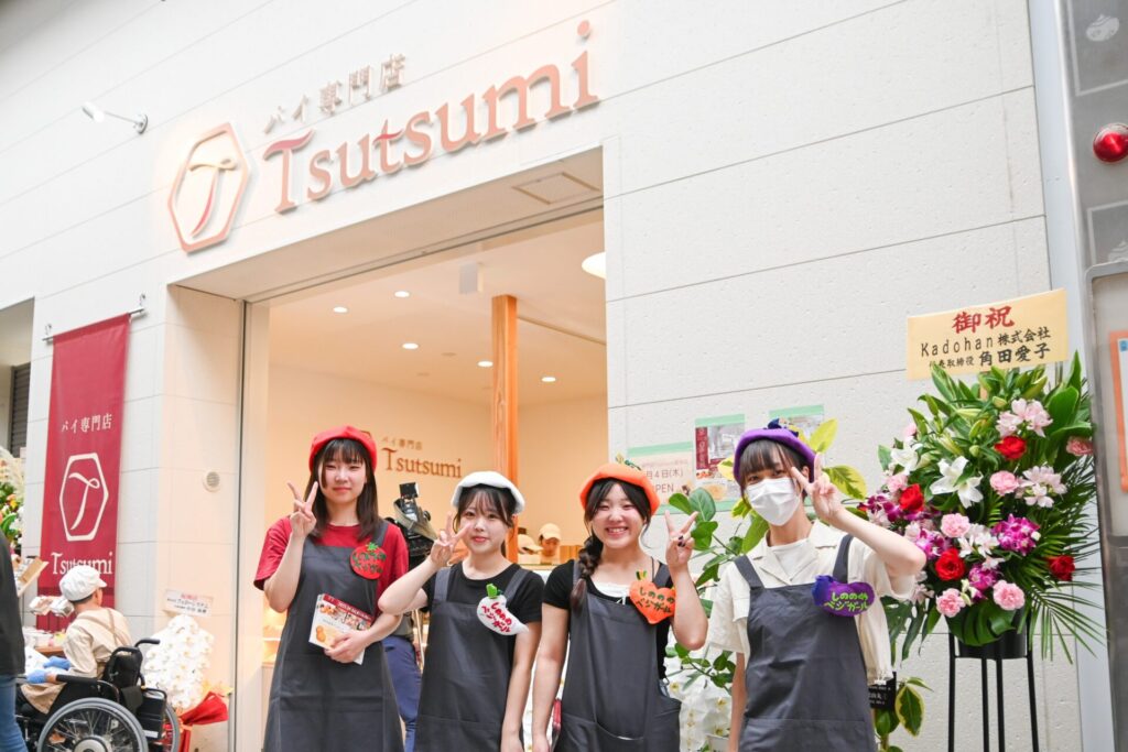 食物栄養学科の「しののめベジガール」がパイ専門店「Tsutsumi」が共同開発した新作スイーツ「道後酒かすパイ(りんごとクリームチーズ)」が、9月4日に新規オープンした道後店のオープニング記念商品として販売されました!