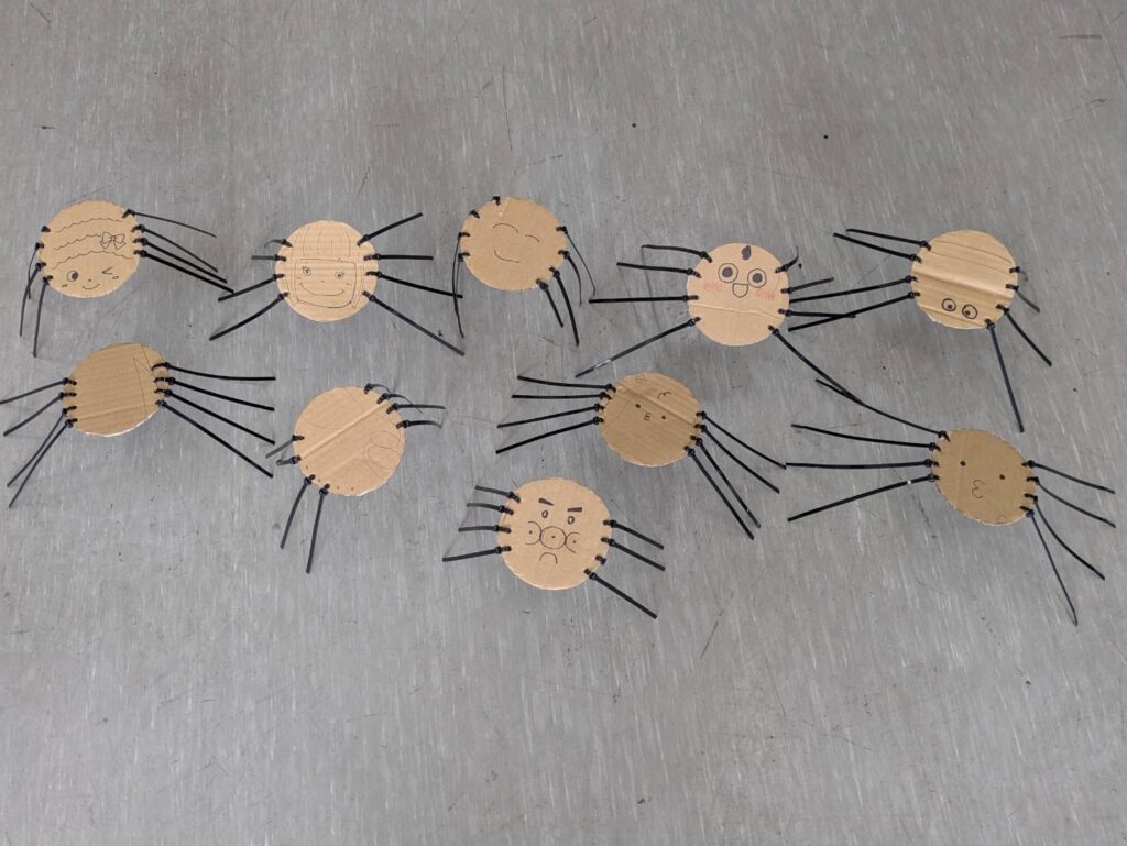 絵を乾かしている間には、段ボールと結束バンドを使った、クモの工作にも挑戦🕷