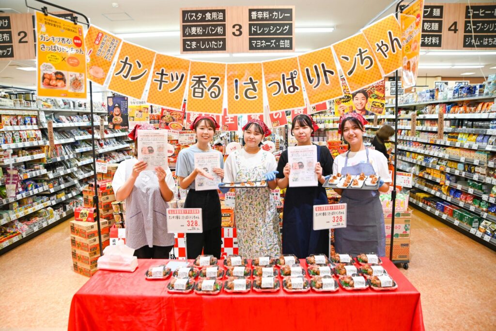 松山東雲短期大学 食物栄養学科・中島ゼミの2年生が、株式会社フジマート四国(スーパーABC)様と共同開発した惣菜「カンキツ香る!さっぱりトンちゃん」が、2025年10月18日より販売開始されました。
