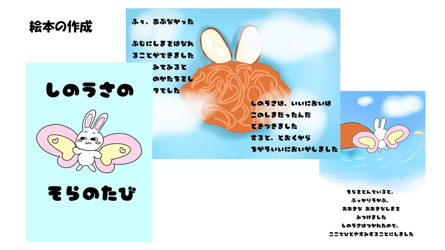 ・メニュー開発に半年ほどかかり、1から考えることの難しさを感じました。また 絵本作成で、メンバーが書いてくれた下書きをデジタルデータに移行して完成させる時に、自分のPCスキルが活かせたので、良かったです。(商品開発チーム:Tさん)