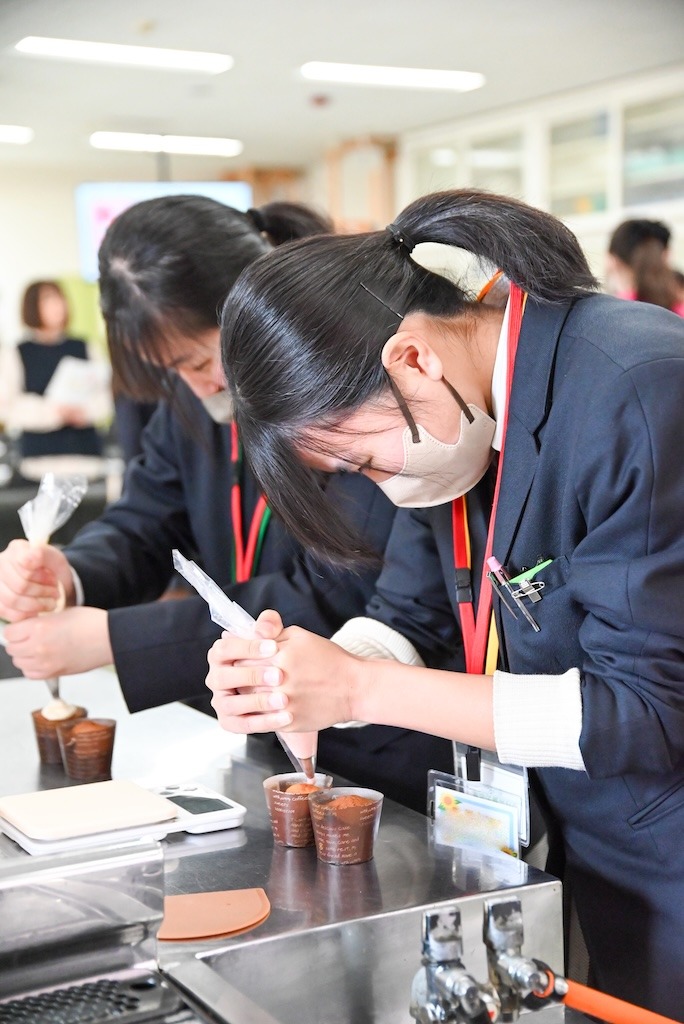 当日は、学科説明や入試説明、個別相談に加え、模擬体験授業として「カップケーキのデコレーション」を実施しました。可愛